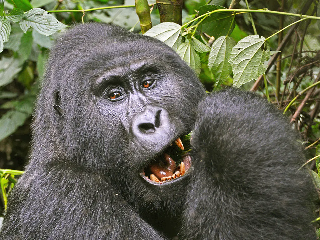 Today is the big day. Prepare yourself for an encounter with one of Bwindi’s gentle giants: the rare Mountain Gorilla. For most people this is the absolute highlight of their tour in Uganda. Bwindi Impenetrable Forest boasts both Mountain Gorillas and Chimpanzees – the only forest in Africa which can make this claim in fact. It also hosts five other species of primate, 113 species of mammal, over 200 butterflies and 360 birds. The Gorillas you will track belong to one of seven habituated family groups who can tolerate the presence of humans for a brief period every day. Your trek will be an exciting journey along forested slopes, entwined vines, bushes and bamboo before you eventually reach the Gorillas’ habitat. En-route, your guide will point out signs of previous Gorilla activity, including dung, nests and chewed bamboo shoots. The time taken to track the Gorillas can take as little as 2 hours to as much as 7 hours before one returns to the camp! Once the Gorillas have been located, your group will be allowed a maximum of one hour with them. Coming face-to-face with a Mountain Gorilla is a truly humbling and emotional experience. This is a fantastic and privileged opportunity to get up close and personal with Uganda’s very own ‘Gorillas in the Mist’.